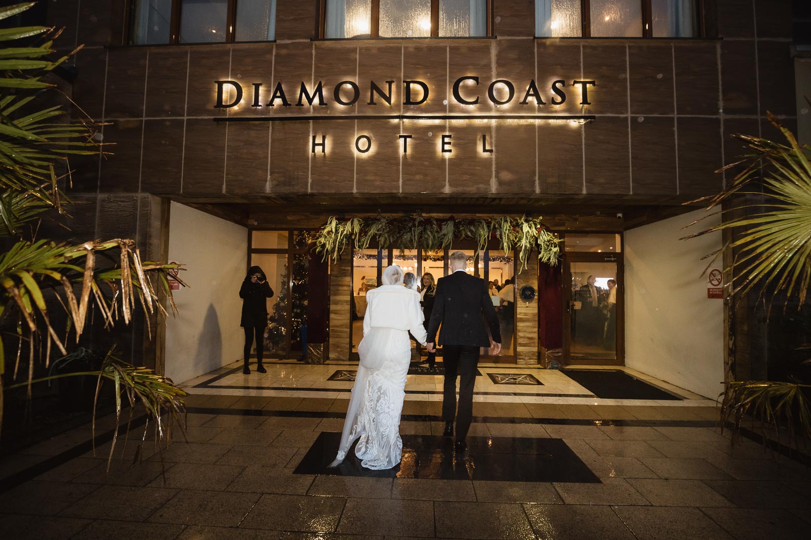 Upon returning to the Diamond Coast Hotel, Yvonne and Seaghan were warmly welcomed by the attentive staff. The reception was filled with heartfelt speeches, including a touching song by a family member. Guests were entertained by Gameshow Challenge, adding a unique and enjoyable twist to the festivities. Special thanks go to Jackie and the entire hotel team for their exceptional service.