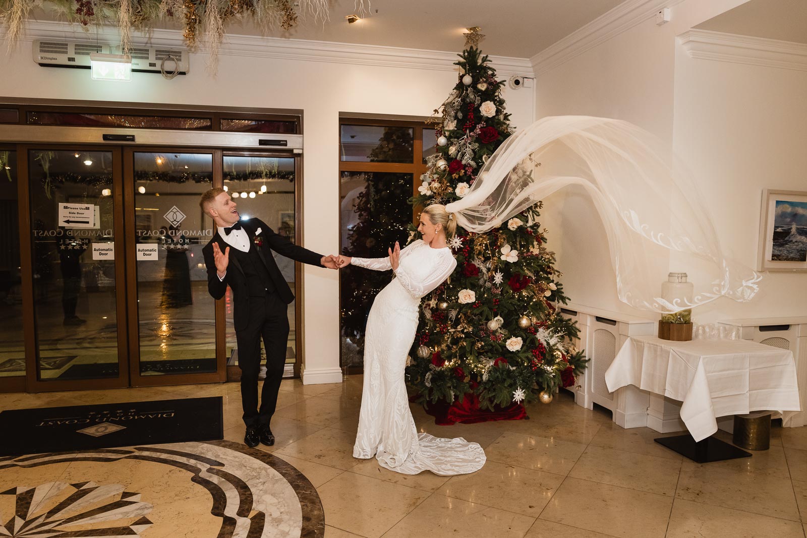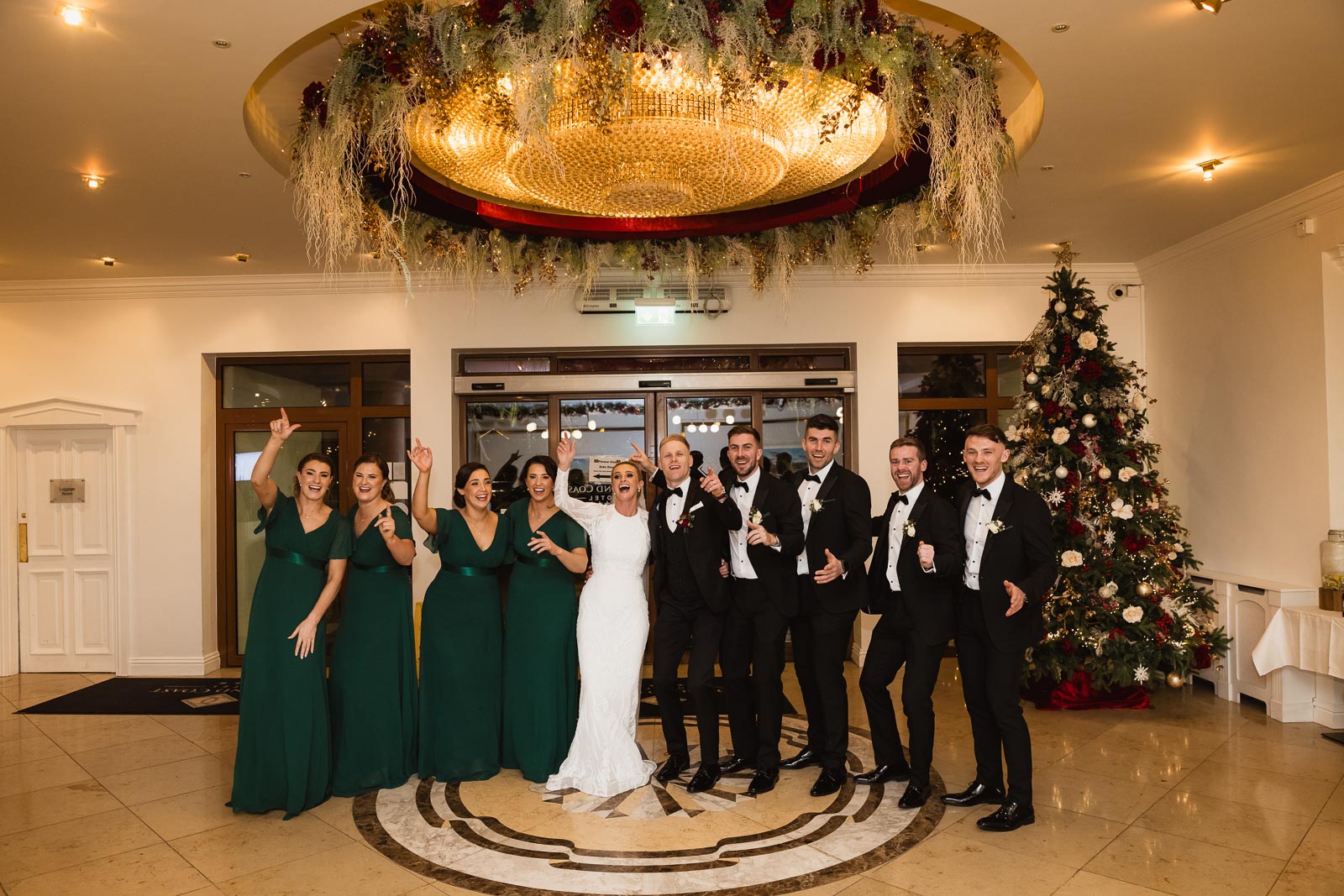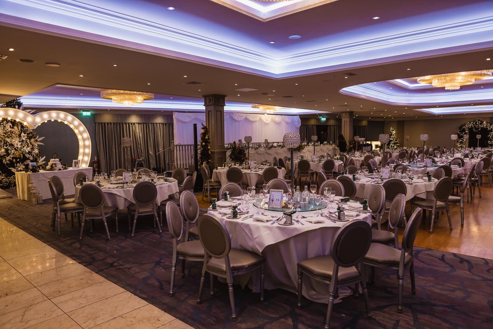 Yvonne and Seaghan chose the renowned Diamond Coast Hotel in Enniscrone for their Christmas wedding. This esteemed venue, overlooking Killala Bay, offers a romantic setting for celebrations. The Bartragh Suite Ballroom, adorned with ornate ceilings and crystal chandeliers, can accommodate up to 500 guests, providing a warm and welcoming atmosphere for any wedding.