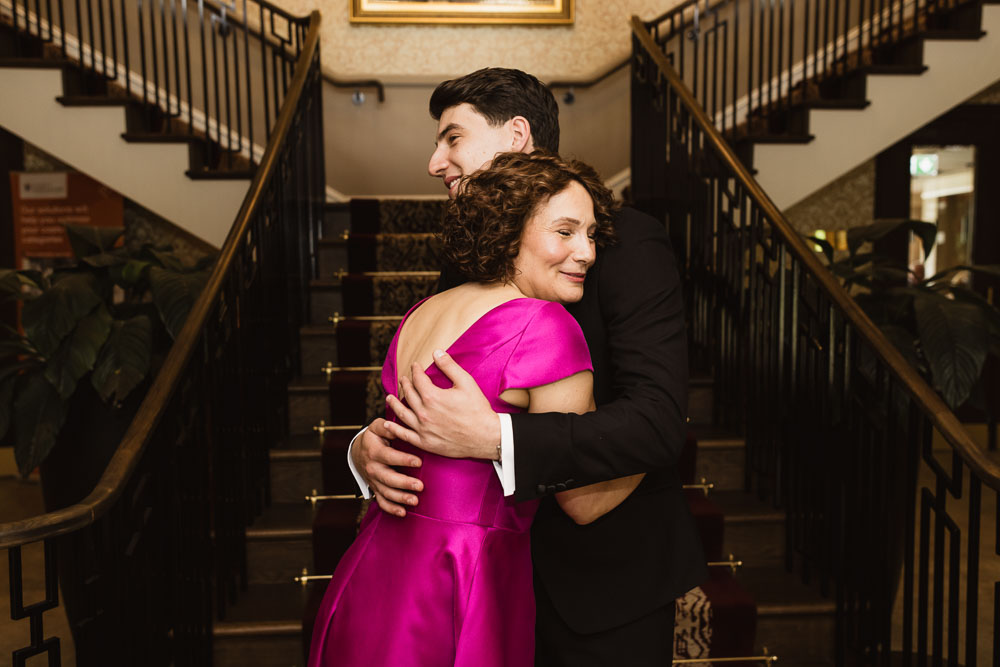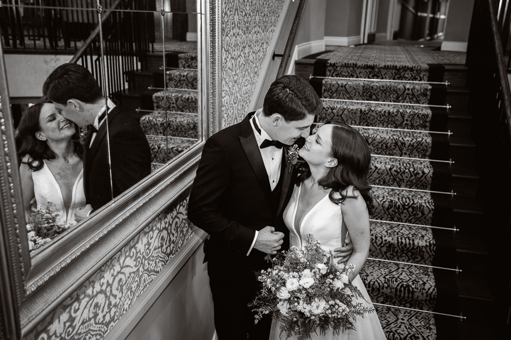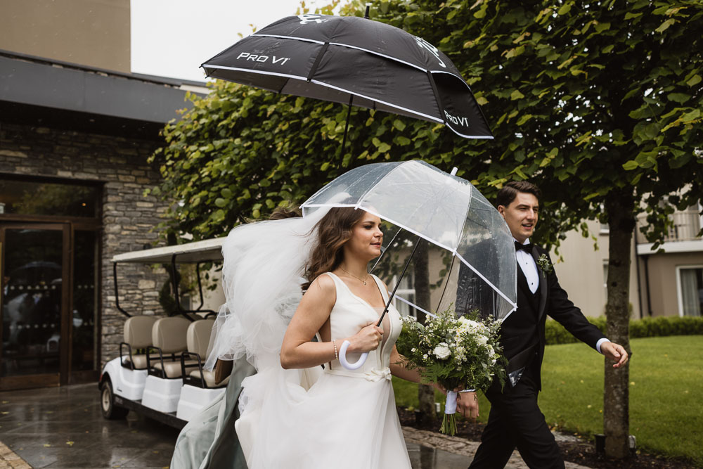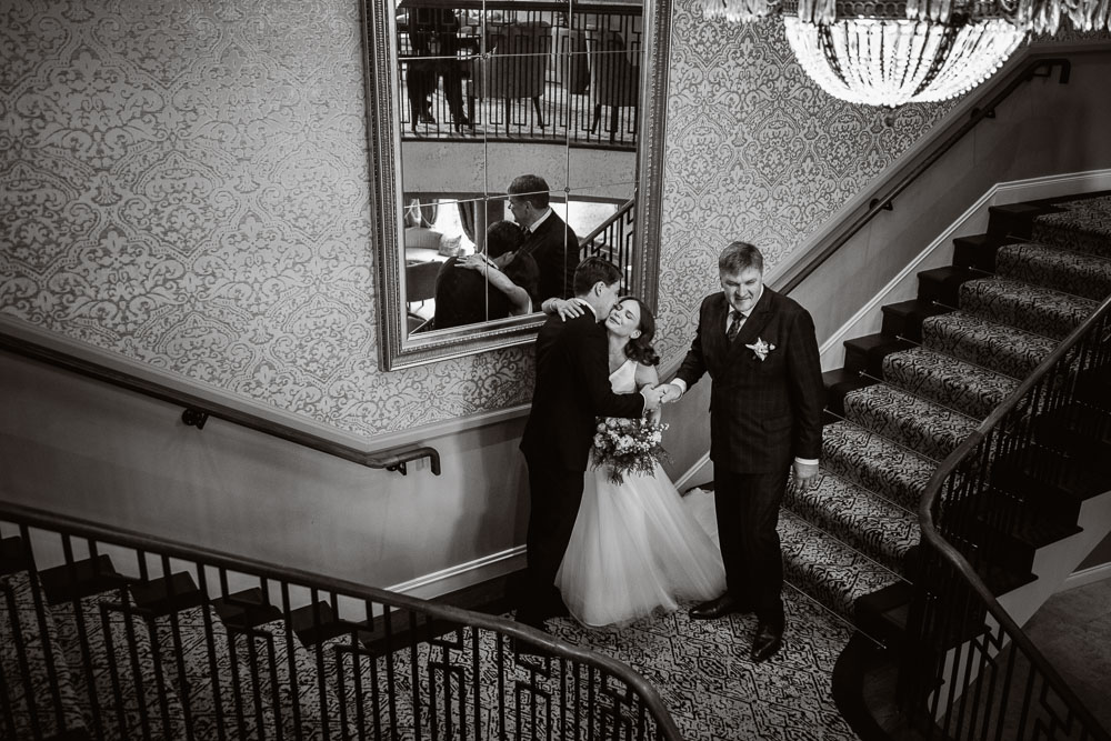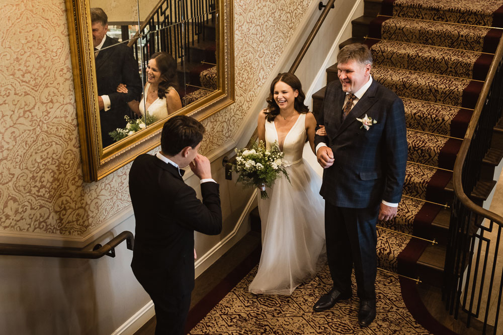 As expected, the Irish weather surprised us with lashing rain! But despite the weather, Diana and Pawel’s wedding was absolutely perfect. Diana, escorted by her dad, met Pawel for their first look at Tulfarris Hotel. The staircase provided a lovely, intimate setting for this special moment.