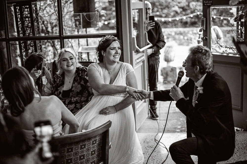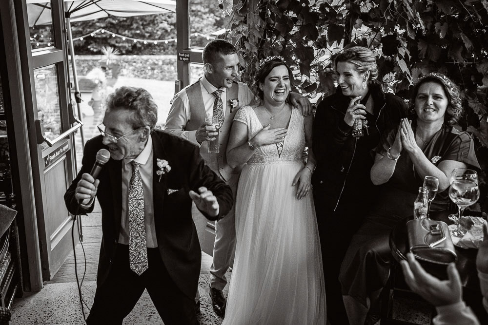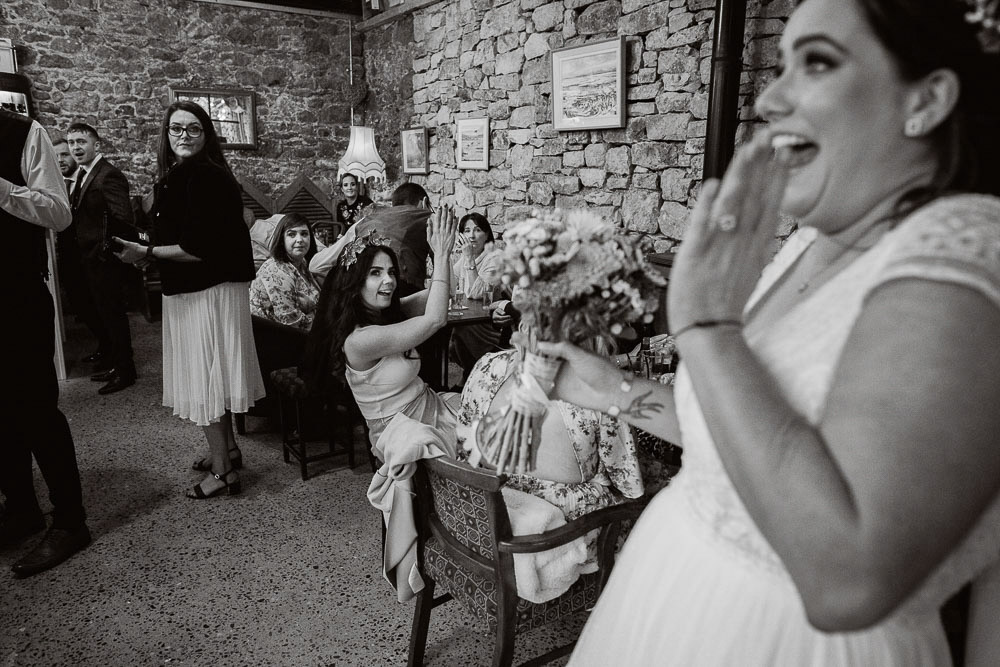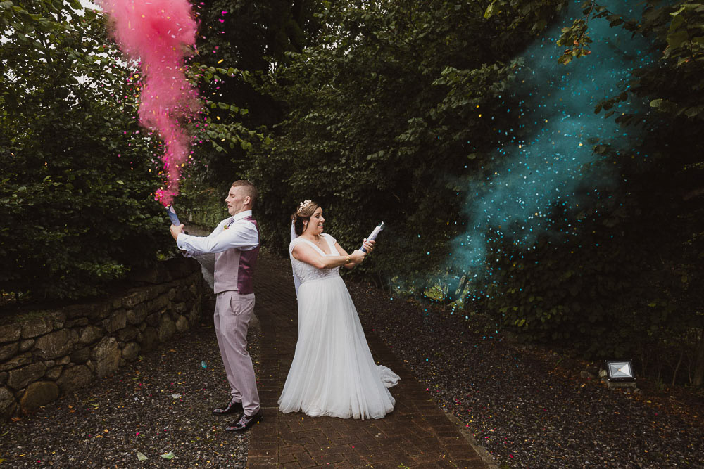 Among the countless moments that painted their day with hues of magic, one stood out—the tender serenade by Kirsty’s father at the reception. His voice, a gentle caress of paternal love, filled the barn with warmth and joy, tugging at heartstrings and evoking smiles all around. And let’s not forget the delightful touch of ‘smoke cannons’ that added a dash of whimsy to their portrait session—a moment of pure enchantment captured forever.