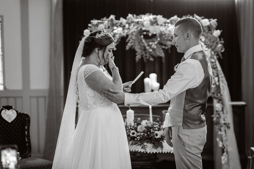 Tucked away in the serene countryside, The Village Barn is a rustic gem adorned with The Orangery, The Courtyard, and charming landscaped gardens. But it was the cozy Sanctuary that stole the spotlight—a haven where Kirsty and Ian exchanged heartfelt vows, enveloped in warmth and love despite the gentle showers outside.