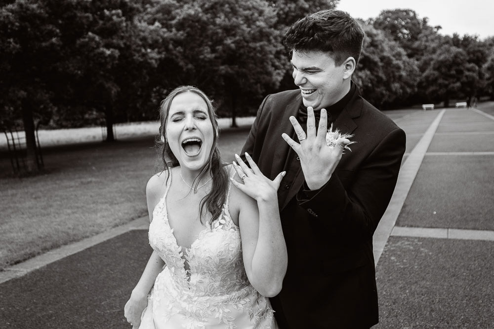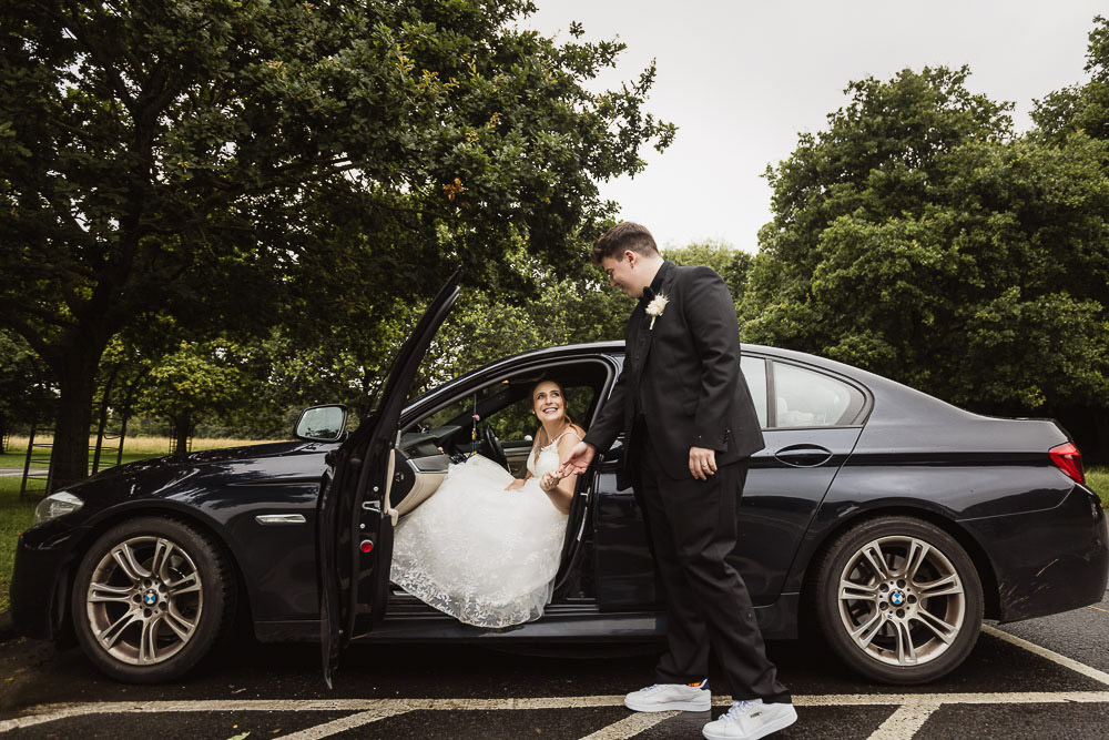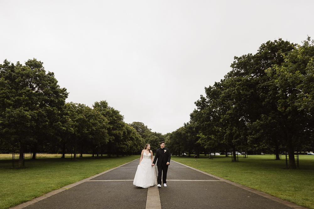The morning preparations were filled with excitement and laughter. Despite the rainy weather, the mood was high, and nothing could dampen their spirits. In between the rain showers, we managed to steal some time for photos in Phoenix Park. The unexpected stars of the shoot were two beautiful white dogs, who joined in for spontaneous photos with the couple. Adding to the natural beauty of the setting, birds soared in the sky, perfectly framing Julia and Everton’s love-filled moments—nothing staged, just pure magic!